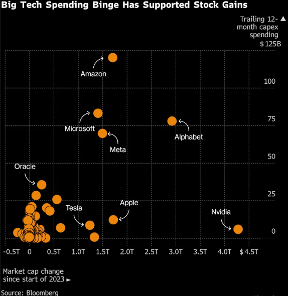 “我们真正担心的是,不只一家公司投入了巨额资本支出,却收效甚微,”纽约梅隆银行市场宏观策略主管Bob Savage表示,“这将促使市场退后审视并质疑现有战略,但目前我们尚缺乏足够信息来解答这个问题。”