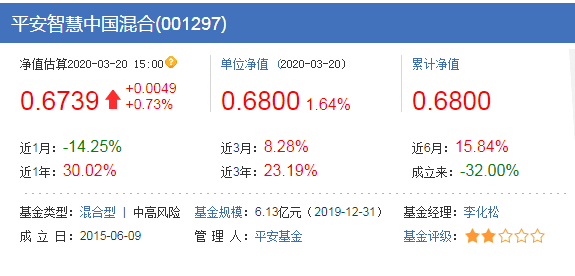 Wind数据显示,平安智慧中国在2015年5月25日开始发行,最终募集资金18亿,截止2020年3月19日,平安智慧中国基金累计亏损超过33%,在最近一个月该基金也亏损了大约14%,目前平安智慧中国基金的规模已从当时的18亿资金缩水到6亿。