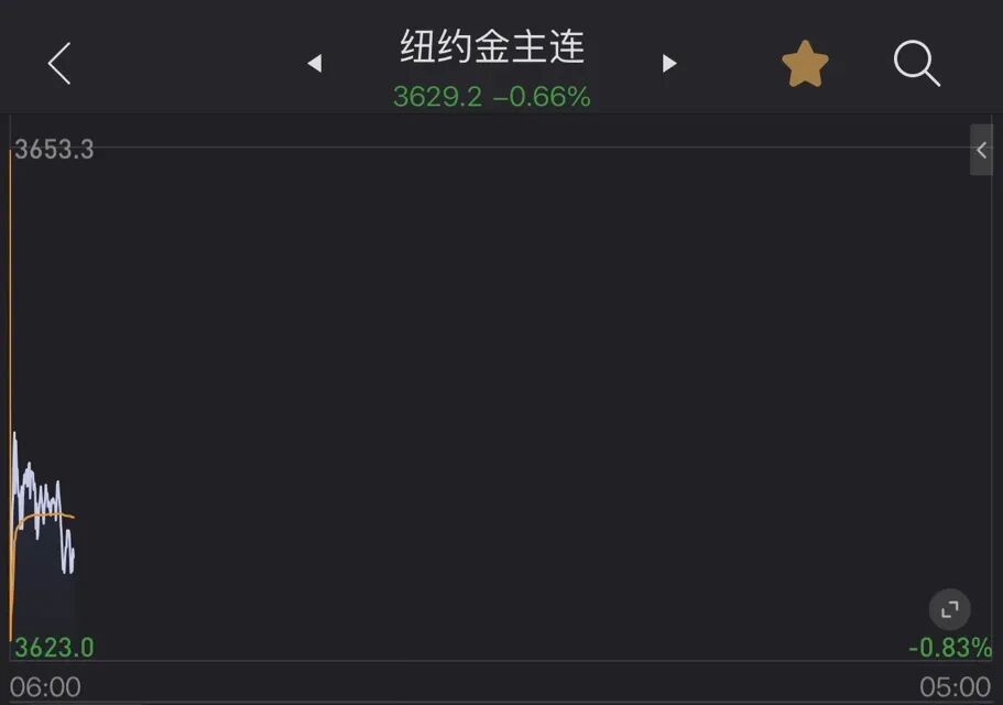 9月8日周一,纽约金期货价格低开低走。截至发稿,报3629.2美元/盎司,跌幅为0.66%。