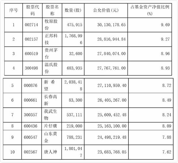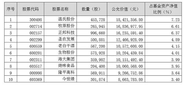 多布局农业、消费和科技等板块中国证券报记者梳理以上部分排名靠前的主动偏股型基金持仓可见,上述基金多提前布局了农业、消费、科技等板块。以前三名为例:排名第一的银华农业产业,其前十大重仓股是: