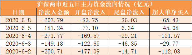 今日沪深两市主力资金开盘净流出83.75亿元,尾盘净流出36.03亿元,两市全天资金净流出207.79亿元。