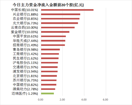 沪深300今日主力资金净流入21.13亿元,创业板净流出20.41亿元,中小板净流出15.22亿元。沪股通净流入8.24亿元,深股通净流入24.47亿元(本文中沪股通、深股通净流入额以当日已用额度来计,与成交净买入额略有差异,但表示的意义大体一致)。