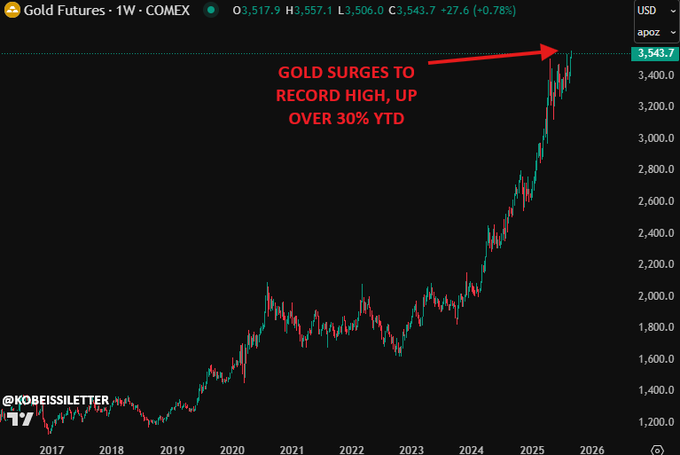 今年迄今,黄金价格已上涨了逾30%,在美股牛市中的回报率达到了标普500指数的三倍,这本身就不是“正常”的价格行为。