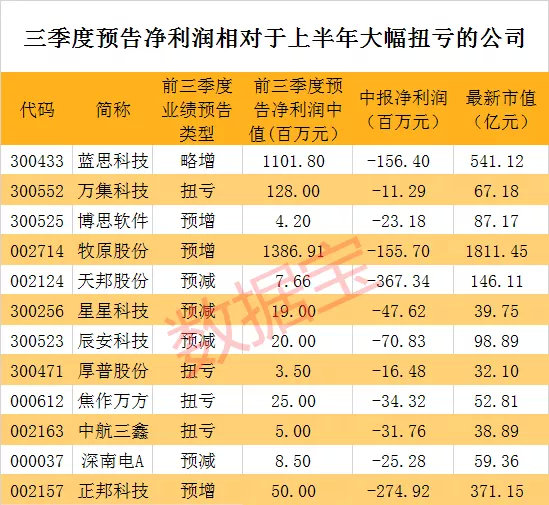 一批中报巨亏的公司三季度大幅盈利,引爆三季报行情……