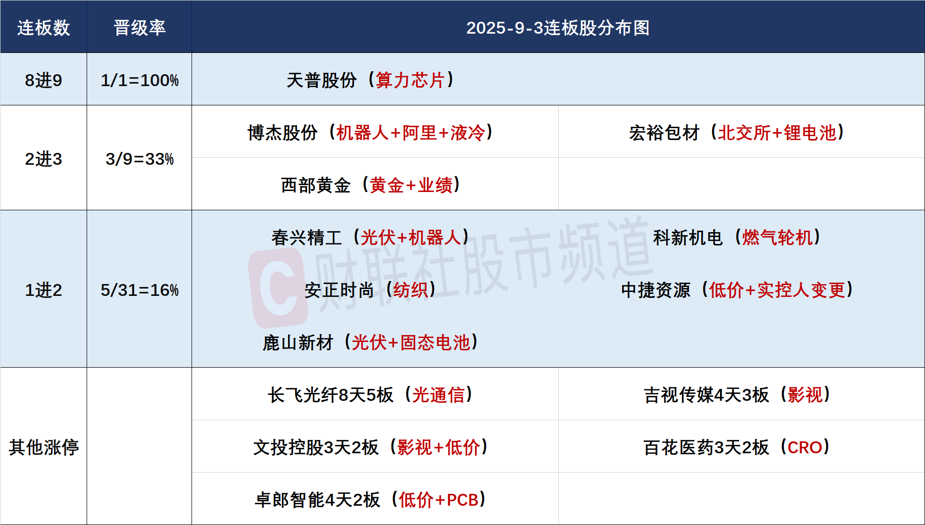 9月3日连板分析:连板股晋级率30%!储能板块表现亮眼