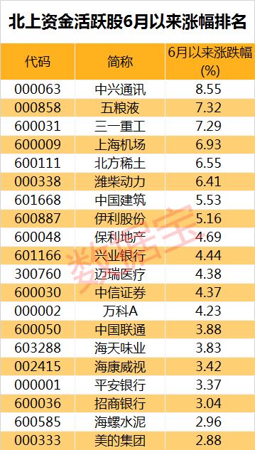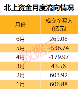 北上资金6月累计净买入近270亿元