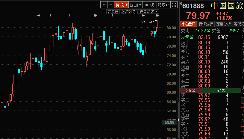 事实上,中国国旅也是北上资金重仓标的之一,截至昨日收盘,北上资金持股中国国旅占流通股比例为12.75%,而去年底,这一比例为12.1%。从最新北上资金持股比例来看,中国国旅排名全A股市场第7位。