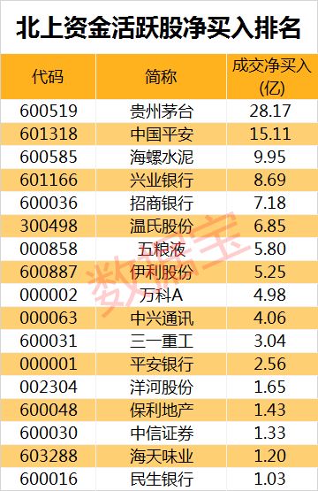 中国平安获北上资金累计净买入15.11亿元排在其后,海螺水泥累计净买入9.95亿元,累计净买入金额超5亿元的还有兴业银行、招商银行、温氏股份、五粮液、伊利股份。