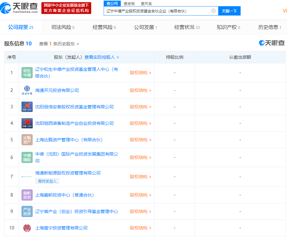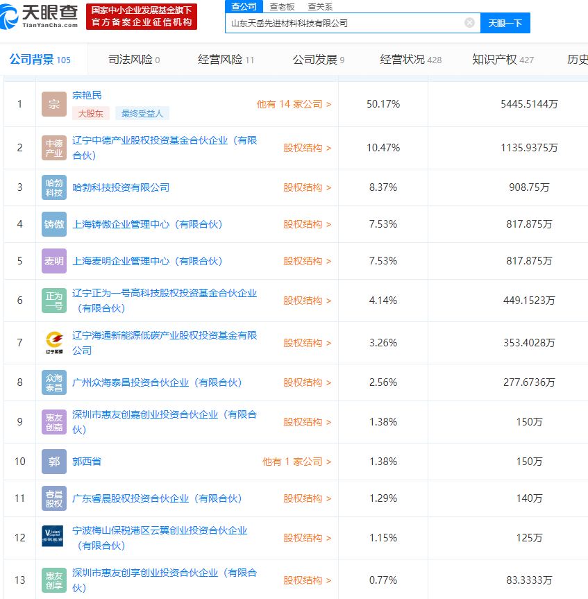 天眼查显示,山东天岳第第二大股东辽宁中德产业股权投资基金合伙企业(有限合伙)持股10.47%。穿透其股权结构,其股东海通开元投资有限公司、海通新能源股权投资管理有限公司的背后有海通证券。