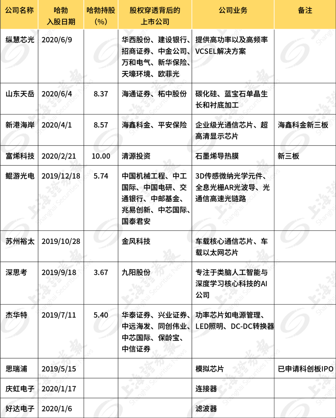 山东天岳先进材料科技有限公司(简称“山东天岳”)的公司变更记录显示,2020年6月4日,公司新增股东哈勃投资,哈勃投资于2019年8月14日认缴出资额908.75万元。目前,哈勃投资为公司第三大股东,持股8.37%。