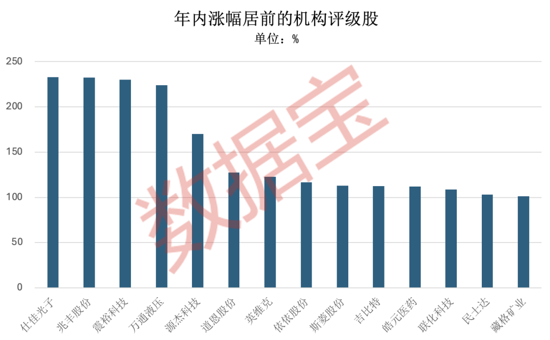 上述140股今年以来平均上涨39.56%,14股年内涨幅均超100%,其中仕佳光子、兆丰股份和震裕科技涨幅居前,分别为232.7%、232.24%和230.17%。