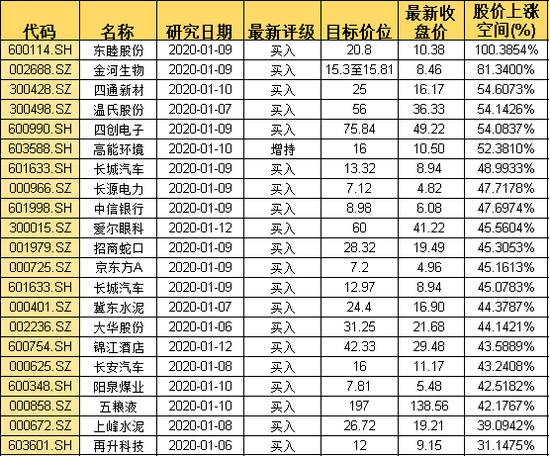 以下是券商研报目标价对应涨幅超过30%的个股: