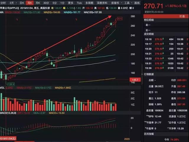 值得一提的是,昨夜苹果公司股价走强,盘中一度涨逾2%,创下历史新高271美元/股,最终收涨1.93%,报270.71美元/股,市值升破12000亿美元。
