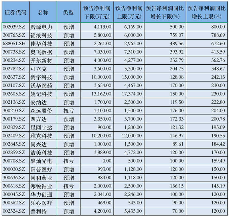 黔源电力3月28日预计,一季度实现归母净利润4113万元至6169万元,同比增长500%至800%,公司称,业绩变动主要是2020年一季度预计发电量较去年同期增加4.12亿千瓦时,收入增长所致。