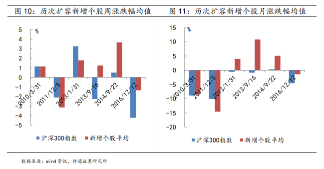 虽然对于大盘影响不大,但是两融标的扩充后,对于这部分新增的标的个股属于利好。可以看到无论是周涨幅还是月涨幅,两融交易开始以及之后的五次扩容,大多数时候新增个股的平均涨跌幅都能跑赢沪深 300 指数。