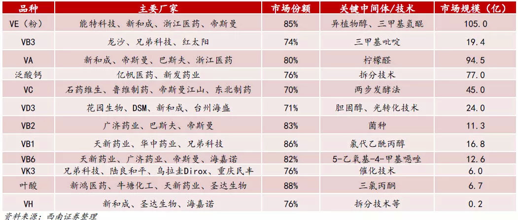 西南证券分析了维生素行业局势,梳理了市场规模。