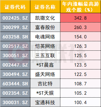 从年初至今,A股中信游戏板块中涨幅最高的个股为凯撒文化、富春股份,其均属于字节头条相关游戏概念股。凯撒文化与字节跳动子公司达成十年全面战略合作标志着字节跳动切入游戏赛道。天风证券称,未来在游戏领域,腾讯头条竞争一触即发。