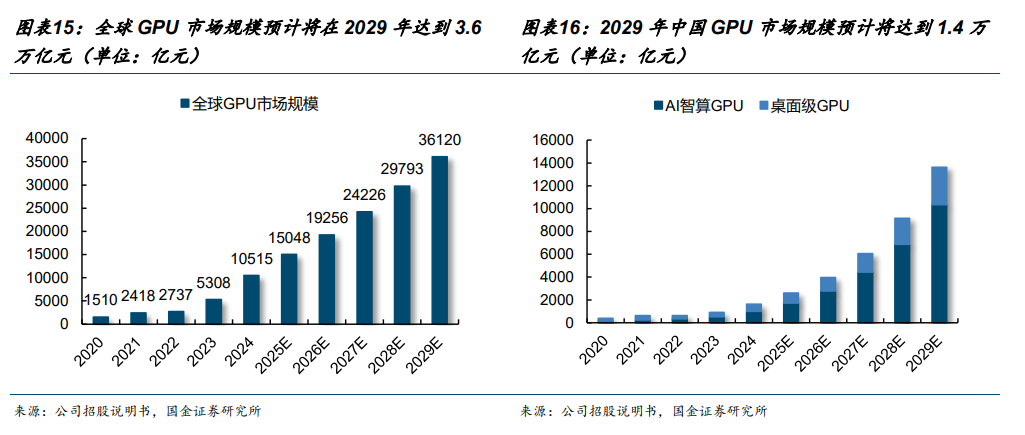 据咨询公司沙利文预测,2024年全球GPU市场规模超万亿元,预计2025-2029年CAGR有望达24.5%;中国市场成长更快,市场规模将从2024年的1425亿元跃升至2029年的13368亿元,2025-2029年CAGR高达53.7%,国产GPU厂商有望深度受益。国金证券认为,AI时代驱动GPU需求快速扩张,国产化进入加速窗口期。