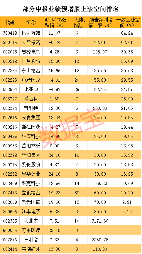 值得注意的是,在机构扎堆推荐的中报业绩预增个股中,还隐藏着北上资金近期大幅加仓个股。其中,立讯精密增持数量最多,最新持股较3月底增加超过3500万股。此外,北上资金4月以来增持浙江医药、长盈精密、比亚迪、紫光国微等个股均超过百万股。(数据宝 陈见南)