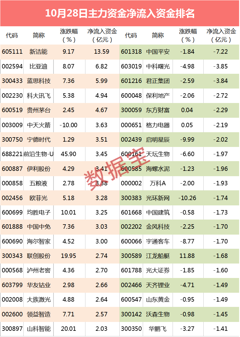 今日有44股资金流出超亿元。中国平安资金流出居首,净流出7.22亿元。公司昨日披露三季报,前三季度实现归母营运利润1086.92亿元,同比增长4.5%。中科曙光流出资金3.85亿元,昨日披露三季报显示,前三季度净利3.24亿元,同比增长29.79%,今日股价大跌近5%。