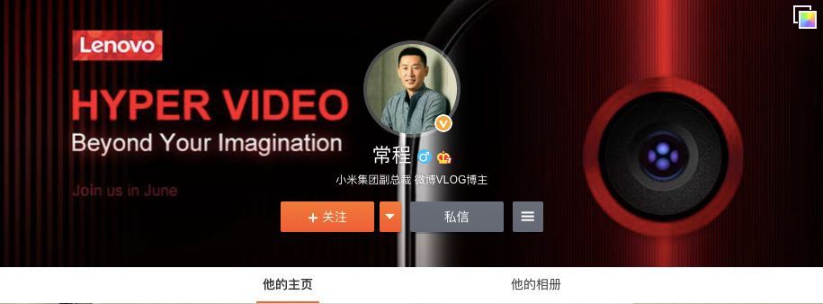 目前,常程的微博已经将认证由原来的“联想集团副总裁”更改为“小米集团副总裁”。不过目前其微博首页的背景图暂时还是联想的内容。