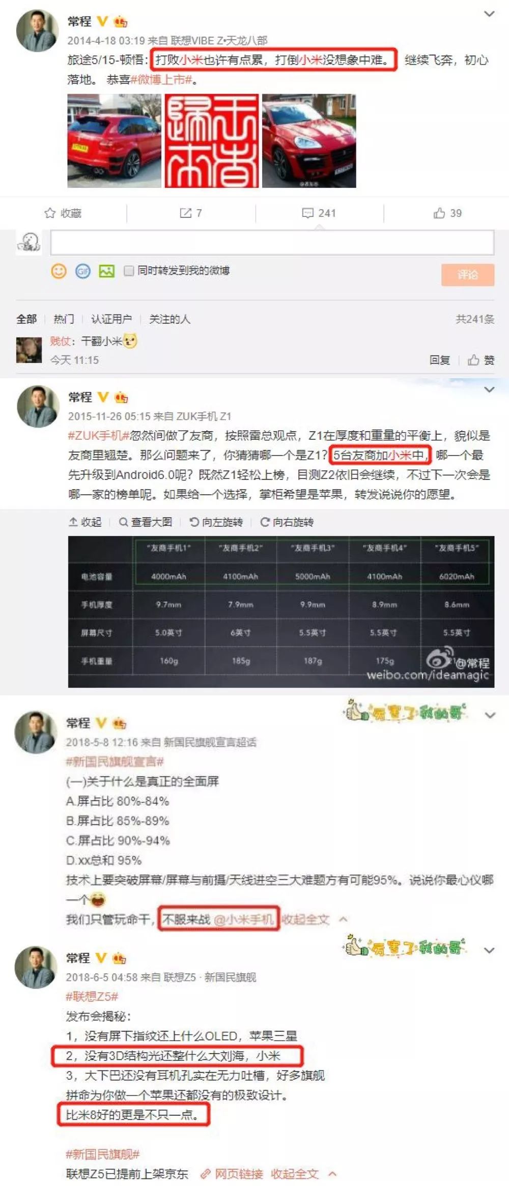 而在所有被常程“碰瓷”的友商中,小米是他最喜欢怼的对象之一。比如下面这些小米被cue的例子: