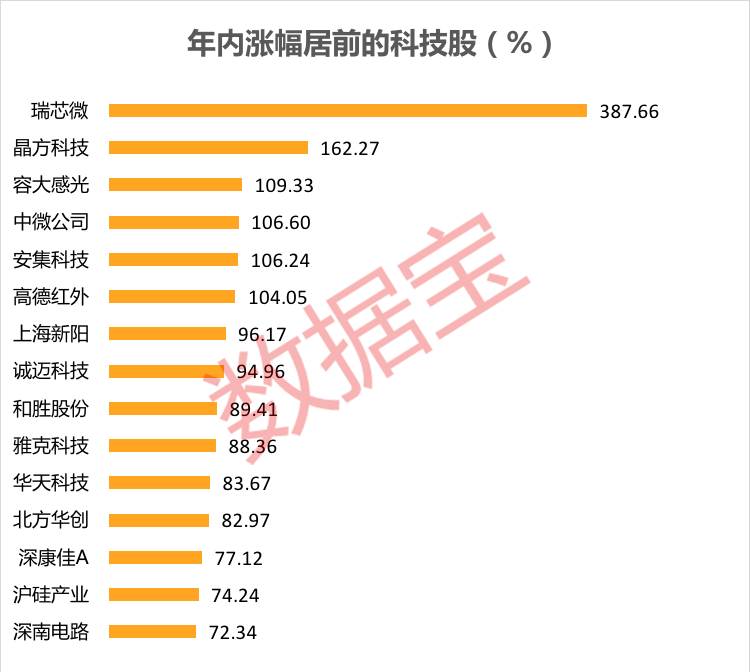 按照中值计算,光刻胶、半导体概念股雅克科技中报净利润增幅中值达到114.25%,今年以来股价涨幅超过88%,报告期内公司在充分考虑公司现有业务各项基础、经营能力,市场、国家政策等因素,本着求实稳健的原则而预计。芯片股高德红外股价翻倍,中报净利润增幅中值达到95%,主要因疫情期间,公司生产的红外测温设备广泛应用于全国各地机场、火车站、医院、地铁站、学校等人流密集的公共场所,并供应其他国家所需,预计将带来公司销售规模的增长;公司一季度净利润同比增长2500%以上。