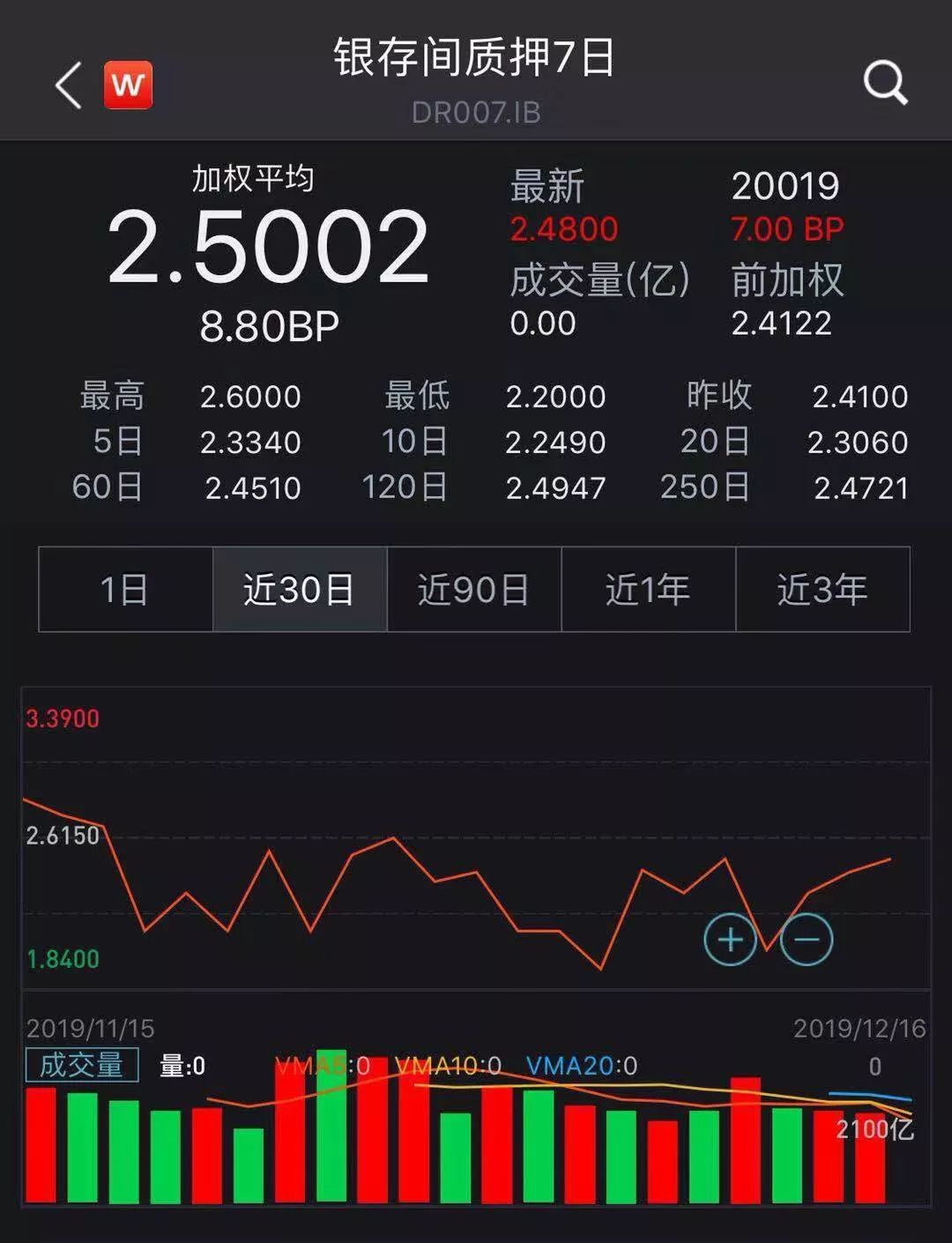 截至记者发稿前,当天银行间市场存款类机构质押式回购隔夜利率(DR001)2.43%,较前一交易日上涨30.5bp,七天期利率(DR007)2.50%,较前一交易日上涨8.8bp。