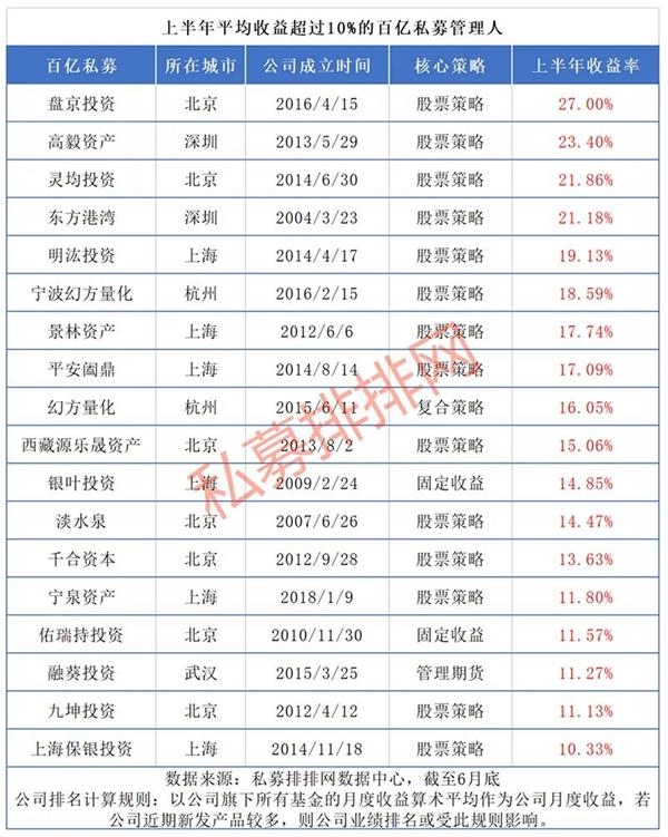 数据显示,在百亿级私募的业绩排名中,沪上一家百亿级私募以下跌5.12%的半年度业绩垫底,对比业绩居前的盘京投资,差距超过了30个百分点。