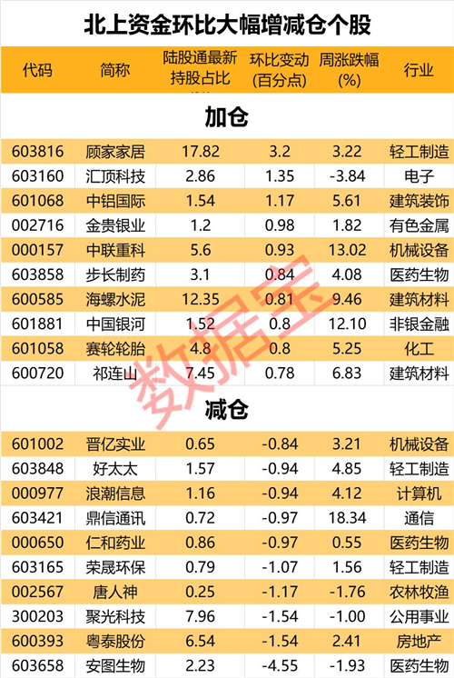 35股本周获北上资金大笔加仓