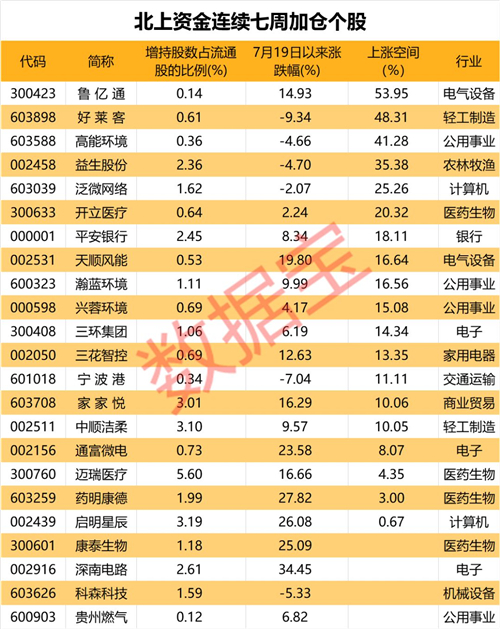 持仓首破1.1万亿,北上资金“买买买”,连续七周加仓23股,这些股上涨空间超30%