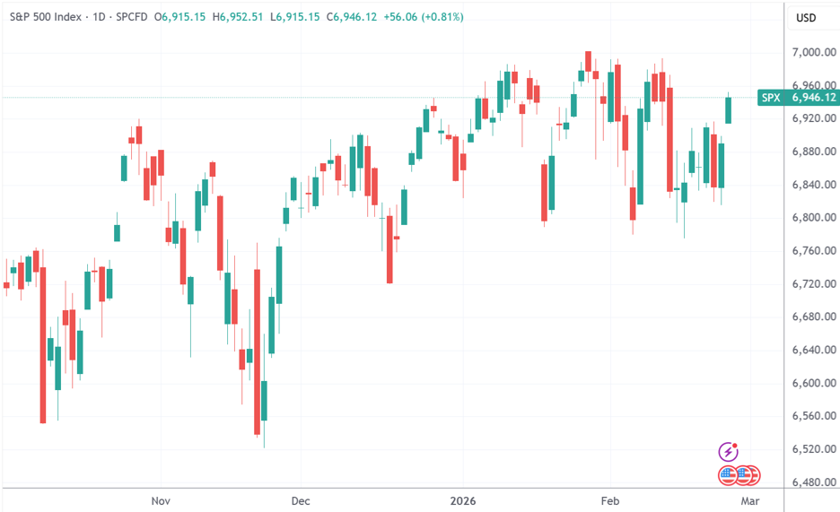 截至收盘,标普500指数涨0.81%,报6946.13点;纳斯达克综合指数涨1.26%,报23152.08点;道琼斯工业平均指数涨0.63%,报49482.15点。