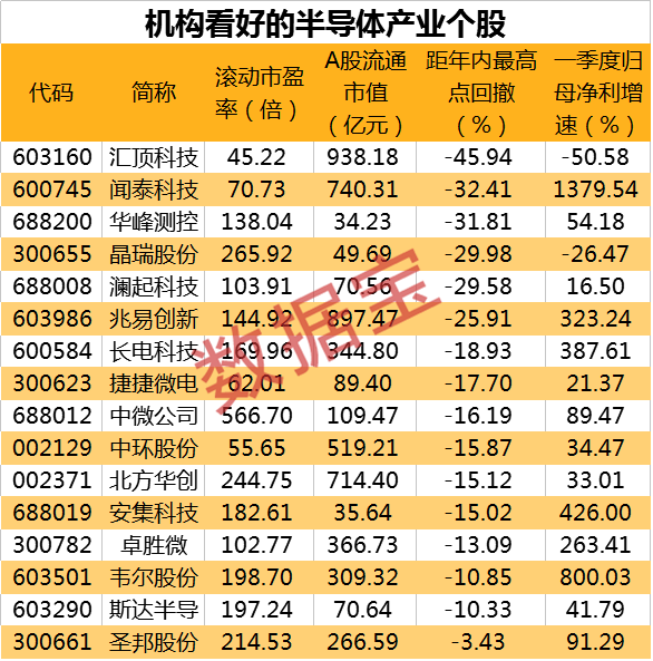数据宝统计显示,上述机构提到的个股中,普遍估值较高,其中汇顶科技、中环股份、捷捷微电的滚动市盈率相对较低,不足70倍。