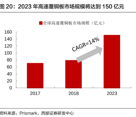 众多终端市场一起发力,目前预测在不远的将来仍有上冲动力。有关机构预计到2023年,覆铜板的全球市场规模预计将超过150亿元,届时率先布局市场的头部供应商将最先获益。