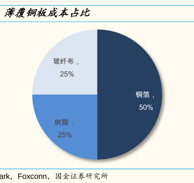 而在覆铜板的数个主要原材料中,铜箔能占到三到五成,环氧树脂能占到三成左右,玻纤的占比也不小。