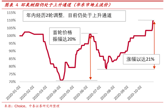 此外环氧树脂更是直接突破了十年的高点,价格已经涨到让厂商开始封盘惜售,支撑覆铜板价格水涨船高。