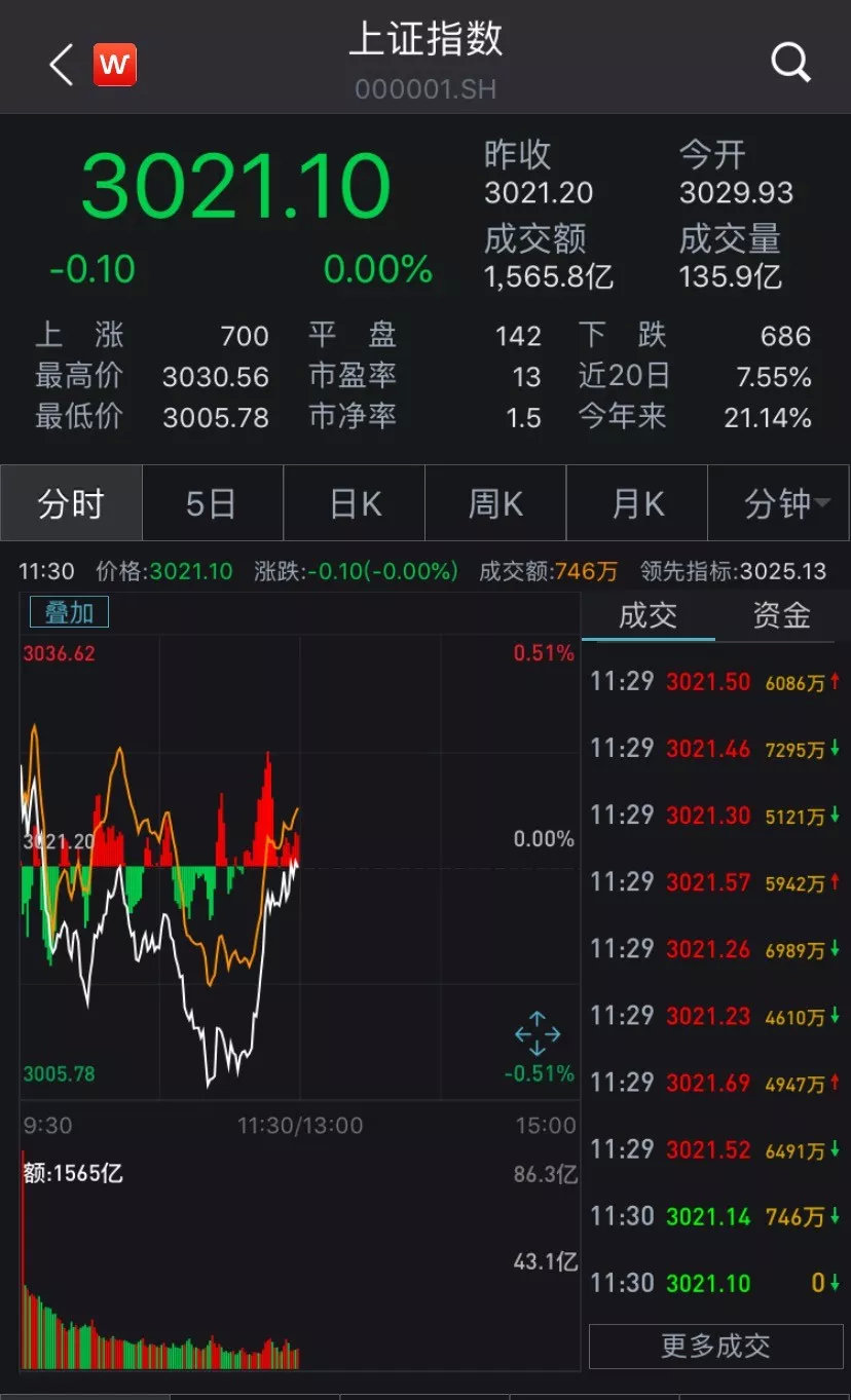 截至午间收盘,上证指数仅下跌0.1点,报3021.10点;深证成指跌0.45%,报9919.74点;创业板指跌0.35%,报1719.34点。