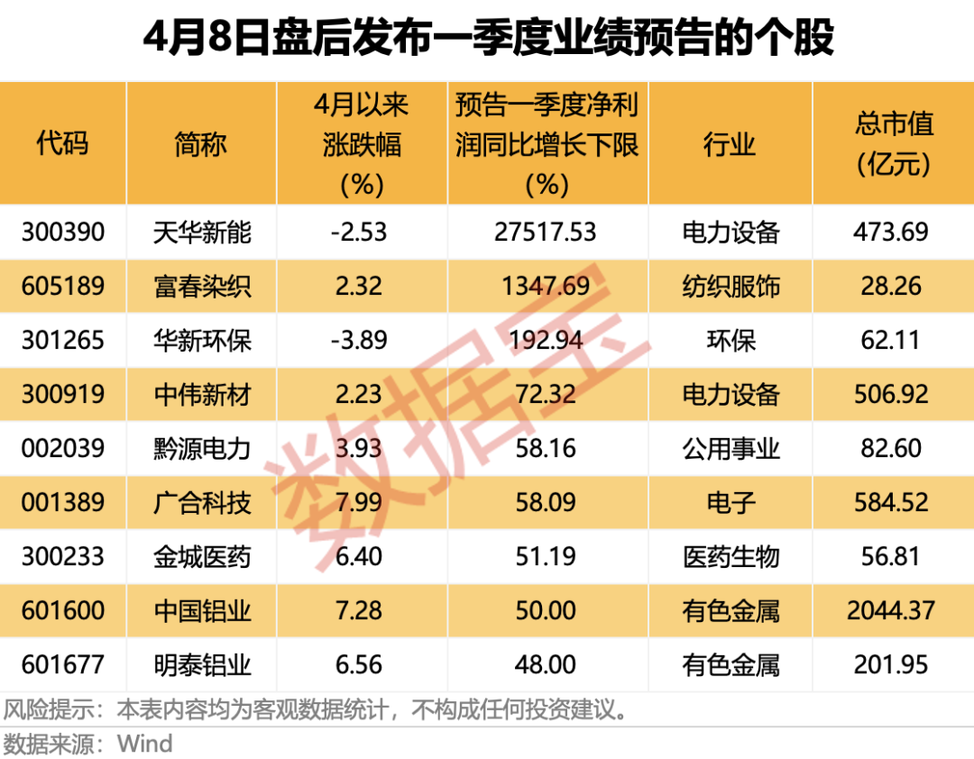 包括天华新能在内,4月8日盘后共有9家上市公司公布一季度业绩预告,均为预增,包括中国铝业、明泰铝业两只铝行业个股。受地缘政治因素影响,年初以来铝价持续上涨,LME铝年初以来累计上涨超15%。