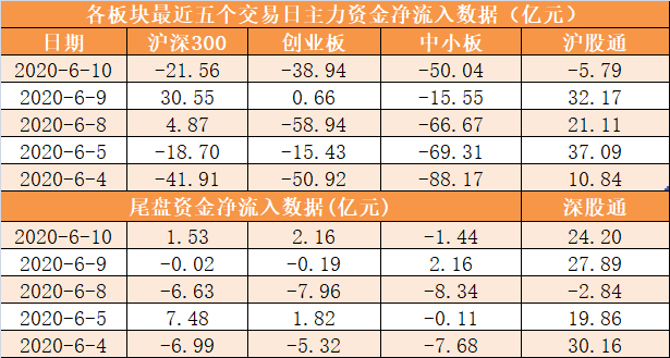 沪深300今日主力资金净流出21.56亿元,创业板净流出38.94亿元,中小板净流出50.04亿元。沪股通净流出5.79亿元,深股通净流入24.2亿元(本文中沪股通、深股通净流入额以当日已用额度来计,与成交净买入额略有差异,但表示的意义大体一致)。