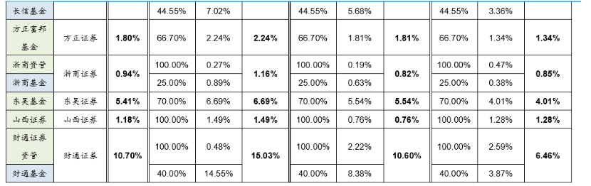另外,近三年公募基金公司营收平均贡献率最低的券商是浙商证券,仅为0.94%。浙商证券100%控股浙商资管,另持有浙商基金25%的股份。具体来看,2017-2019年,浙商资管对浙商证券营收贡献率分别为0.27%、0.19%、0.47%,2017-2019年浙商基金对浙商证券营收贡献率分别为0.89%、0.63%、0.38%。