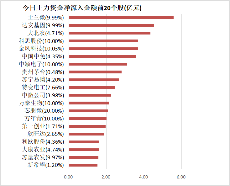 5.士兰微主力资金净流入5.57亿元居首