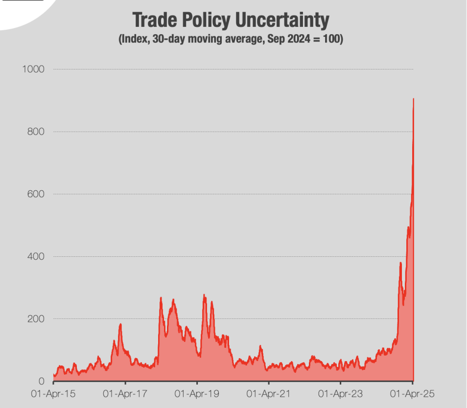 APEC警告称,自特朗普上台后,贸易政策不确定性指数已经激增至多年新高。