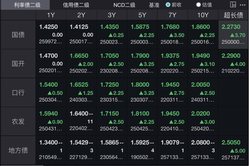 12月4日,国债收益率全线上行,以30年期国债为代表的超长期限品种是此次调整的焦点;超长期国债上行3.7bp,升至2.273%。截至收盘,国债期货收盘全线下跌,30年期主力合约跌1.04%报112.450元,创2024年11月22日以来新低;10年期主力合约、5年期主力合约以及2年期主力合约均下跌。