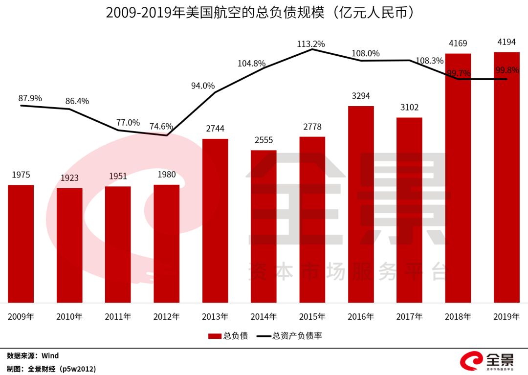 据Wind数据显示,美国航空业的平均负债股本率超过了100%。其中,美联航177%、达美117%、西南航空40.7%。债务问题最严重的美国航空负债340亿美元,超过2011年申请破产的时候。