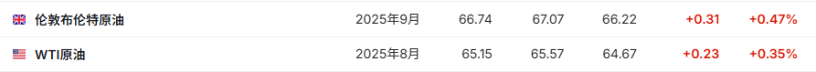 3. 截至发稿,WTI原油涨0.35%,报65.15美元/桶。布伦特原油涨0.47%,报66.74美元/桶。