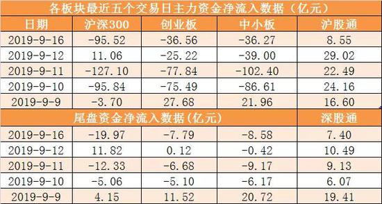 沪深300今日主力资金净流出95.52亿元,创业板净流出36.56亿元,中小板净流出36.27亿元。沪股通净流入8.55亿元,深股通净流入7.4亿元(本文中沪股通、深股通净流入额以当日已用额度来计,与成交净买入额略有差异,但表示的意义大体一致)。