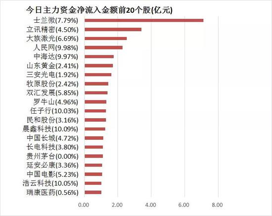 5、士兰微主力资金净流入7.12亿元居首