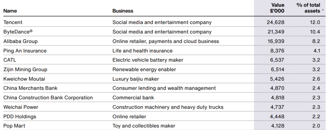 在这份持仓名单中,截至今年1月底,腾讯控股位列第一大重仓股,市值占比达到12%;前十大持仓还包括字节跳动(未上市)、阿里巴巴、中国平安、宁德时代、紫金矿业、贵州茅台、招商银行、建设银行和潍柴动力。