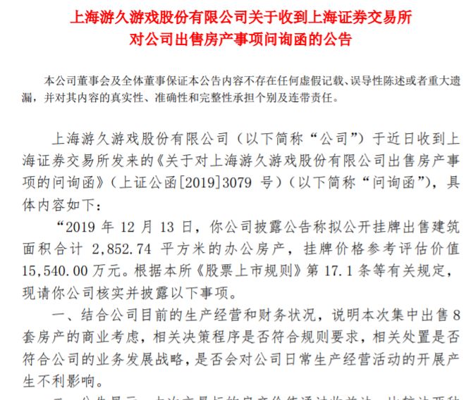 12月12日晚间,沪市公司*ST游久(600652)发布关于公开挂牌出售部分房产的公告。