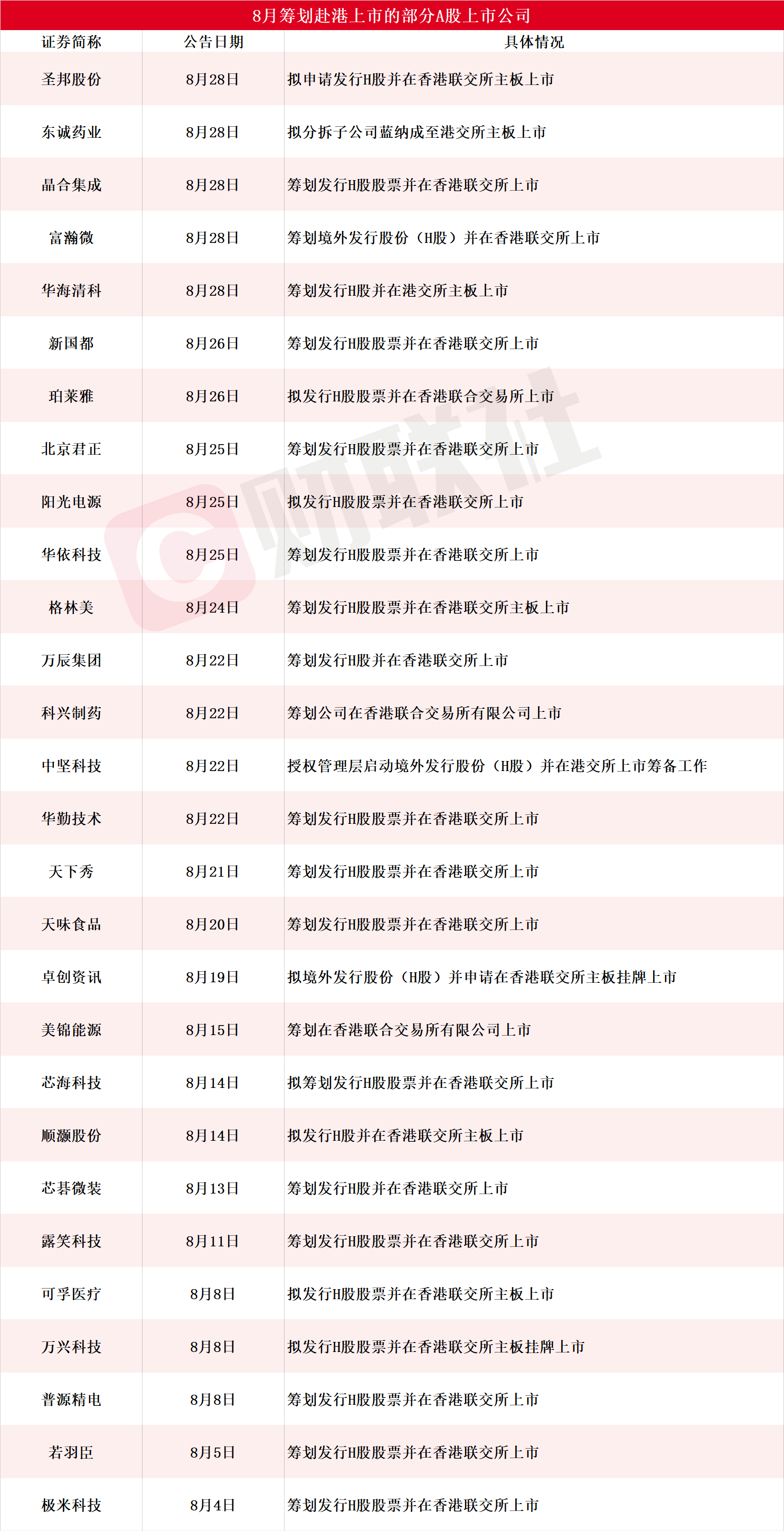 “A+H”股热潮持续!8月累计28家A股上市公司披露赴港IPO进展
